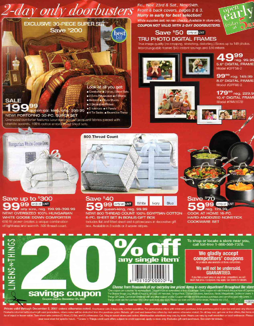 Here is the Black Friday ad for Linens-N-Things, day after Thanksgiving: