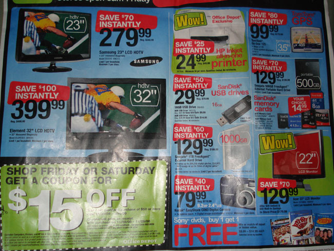 Here is the Black Friday ad for Office Depot, day after Thanksgiving: