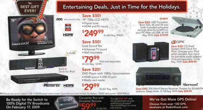 Here is the Black Friday ad for Radio Shack, day after Thanksgiving: