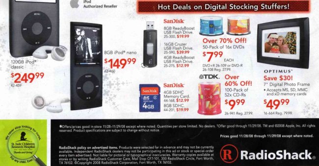 Here is the Black Friday ad for Radio Shack, day after Thanksgiving: