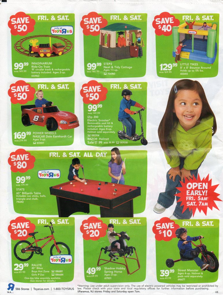 Here is the Black Friday ad for Toys 'R Us, day after Thanksgiving: