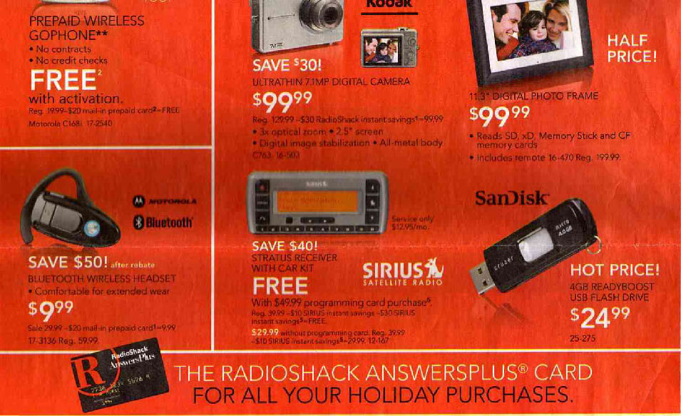 Here is the Black Friday ad for Radio Shack, day after Thanksgiving: