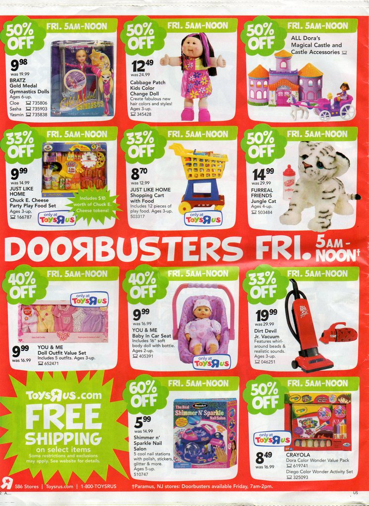 Here is the Black Friday ad for Toys 'R Us, day after Thanksgiving: