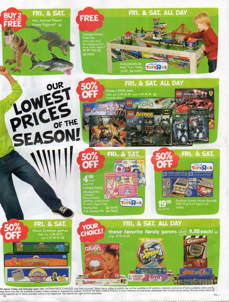 Here is the Black Friday ad for Toys 'R Us, day after Thanksgiving: