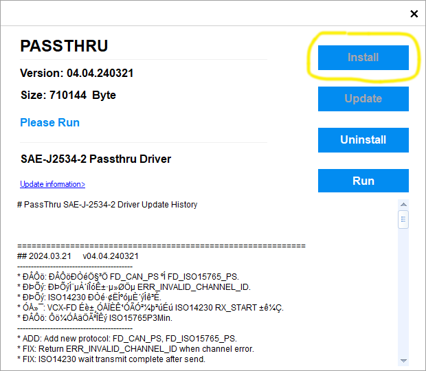 You may also need to install the SAE-J2534-2 Passthru Driver, simply click on "Run" on that same screen.