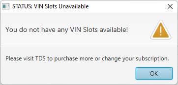 that needs the subscription, this will pop up. Basically giving you the choice to either use one of your free VIN slots, or cancel.