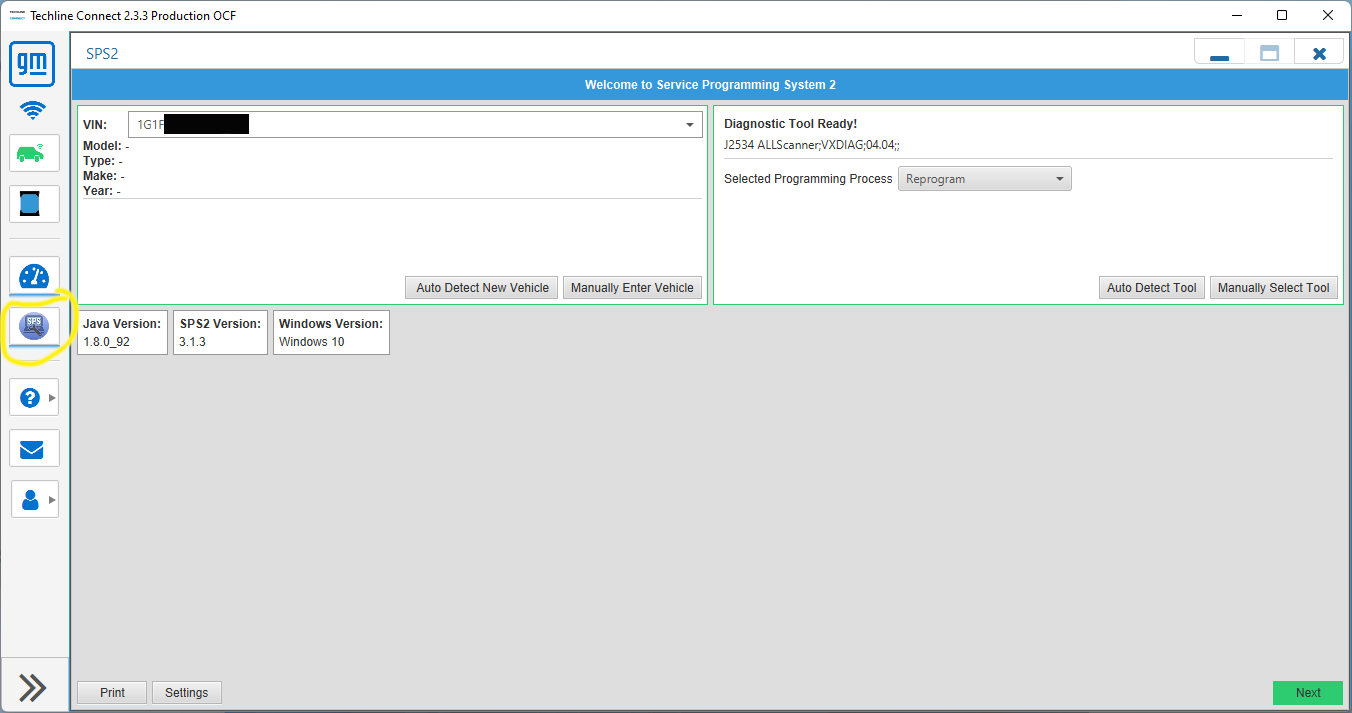 Once it sees your car, click on the SPS2 icon circled here: