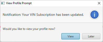 You may get a popup saying your VIN Subscription has been updated, you can view or dismiss, doesn't matter.