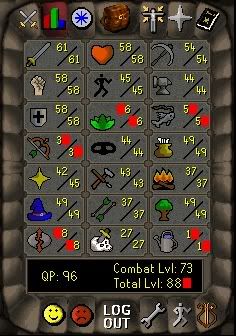 Hi, I would like to sell my Runescape account. I have tried putting it on Ebay, but Ebay keeps rejecting my auction. So I will try to sell the account here. Anyway, I have killed many players in the wilderness with this account before (too many to count). It has a unique combination of maigc and melee. Also, the account includes over 750K in cash(gp). Here is a list with my stats(I cencored some levels so Jagex will be unable to tell which account it is and ban it):
