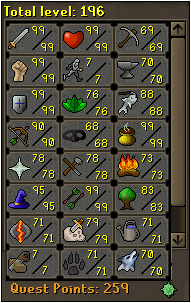 The account has a whopping 259 QP, only Smoking Kills and Rocking Out (two new quests) are left to be done for a Quest Cape!