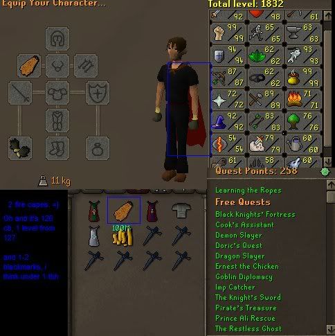 92attack 99str 93def 99cooking 62summing other skilllss lvl 127. lvl 119 in f2p Also the account haves 100millgp on it and 2 firecapes... and full bank of junk items..