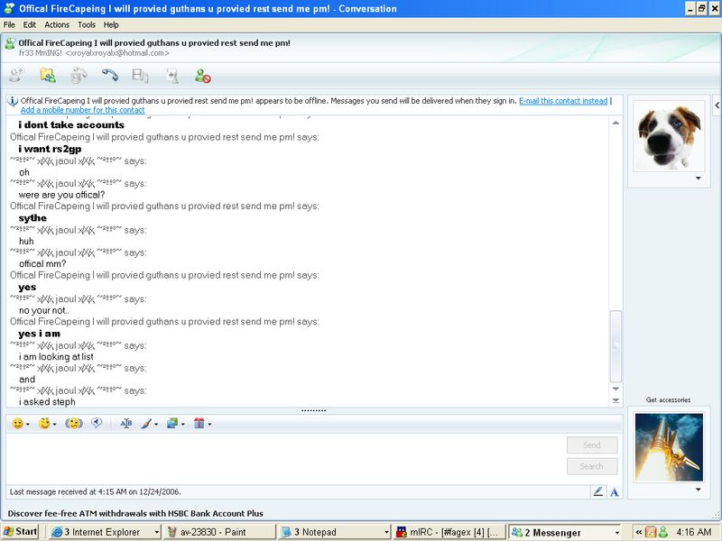he has like 150 posts here can you ban him and put on scammers list he doing *offical* fire capping and said he is offical on sythe lol