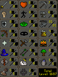 He has 9 skills over level 80 (most of them are mid or higher) And 2 level 90+ skills. With a total level of 1687. This account was created a very long time ago, when Addy was the strongest armor, Santas were 10k (the good ol days) so you know its old. I'd really hate giving this character up, but Like I said, I've purchased a better account.