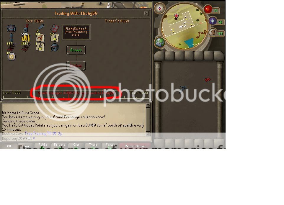 dont care well the name of the accout in dapureof2009 check him at thew forums for proof too that it is a real runescape acc well pm me on here or on habbo(dot) com my habbo name is z=zenzi  ohh also i have msn messenger add me its zenzi_boy then at sighn  Email Removed   and you know (dot) com well c ya comment pls aswell bye!