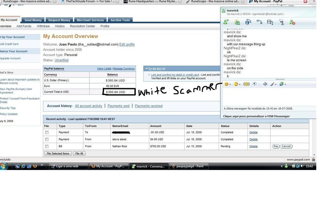 xxxxxxxx15 pass xxxxxx7/18/200810:25:12 AMmavrickNightPkerZgo world 29 7/18/200810:25:18 AMmavrickNightPkerZill meet u7/18/200810:25:20 AMNightPkerZmavrickp2p?7/18/200810:25:22 AMmavrickNightPkerZmy guys at edge7/18/200810:25:24 AMmavrickNightPkerZno f2p7/18/200810:25:59 AMNightPkerZmavrickhow will i see p2p itmes?7/18/200810:26:11 AMmavrickNightPkerZoooooooooooo7/18/200810:26:17 AMmavrickNightPkerZu cant see them7/18/200810:26:19 AMmavrickNightPkerZoh i know7/18/200810:26:24 AMmavrickNightPkerZi can equp them7/18/200810:26:28 AMmavrickNightPkerZand come to that world7/18/200810:26:31 AMmavrickNightPkerZswitch for next batch7/18/200810:26:35 AMmavrickNightPkerZand show those7/18/200810:26:40 AMmavrickNightPkerZand then show u cash7/18/200810:26:41 AMmavrickNightPkerZ:) 7/18/200810:26:44 AMmavrickNightPkerZthere we go7/18/200810:26:52 AMmavrickNightPkerZk7/18/200810:26:53 AMmavrickNightPkerZ?7/18/200810:28:22 AMNightPkerZmavrickhello?7/18/200810:28:28 AMmavrickNightPkerZim comn dude7/18/200810:28:29 AMmavrickNightPkerZrelax7/18/200810:28:36 AMNightPkerZmavrickcan i see noob's bank?7/18/200810:29:03 AMNightPkerZmavrick?,,,?7/18/200810:29:09 AMmavrickNightPkerZno....7/18/200810:29:12 AMmavrickNightPkerZu dont need 27/18/200810:29:18 AMmavrickNightPkerZtheres no reason for u to see that7/18/200810:29:22 AMNightPkerZmavrickdude hes lvl 39 jesus crist7/18/200810:29:27 AMmavrickNightPkerZstill7/18/200810:29:29 AMNightPkerZmavricku dont have 999999mil on it7/18/200810:29:33 AMmavrickNightPkerZhow u know7/18/200810:29:37 AMNightPkerZmavricki do7/18/200810:29:38 AMNightPkerZmavricklols7/18/200810:29:50 AMNightPkerZmavrickcan i see then...7/18/200810:30:28 AMmavrickNightPkerZswitchin7/18/200810:30:34 AMNightPkerZmavricklet me see the bank7/18/200810:30:37 AMNightPkerZmavrickman u got like7/18/200810:30:39 AMNightPkerZmavrick300k max7/18/200810:30:40 AMNightPkerZmavrickhere7/18/200810:30:54 AMmavrickNightPkerZwanan know the real reason why7/18/200810:30:57 AMmavrickNightPkerZi wont let u see7/18/200810:31:02 AMmavrickNightPkerZthe bank pin is the same 7/18/200810:31:04 AMmavrickNightPkerZas my main7/18/200810:31:07 AMNightPkerZmavrickoh7/18/200810:31:08 AMmavrickNightPkerZso i dont forget7/18/200810:31:09 AMNightPkerZmavrickthat explains all7/18/200810:31:12 AMmavrickNightPkerZlol7/18/200810:31:16 AMmavrickNightPkerZother wise7/18/200810:31:18 AMmavrickNightPkerZi wouldnt care7/18/200810:31:19 AMmavrickNightPkerZlol7/18/200810:33:09 AMNightPkerZmavrickok.. i belive u got the stuff7/18/200810:33:16 AMmavrickNightPkerZoh7/18/200810:33:17 AMmavrickNightPkerZokay7/18/200810:33:20 AMmavrickNightPkerZi was gonna change to the rest7/18/200810:33:21 AMmavrickNightPkerZlol7/18/200810:33:26 AMmavrickNightPkerZiight7/18/200810:33:38 AMmavrickNightPkerZso imma put them in bank7/18/200810:33:42 AMNightPkerZmavricksure7/18/200810:35:13 AMmavrickNightPkerZdo u know where to send the first half from?7/18/200810:35:26 AMNightPkerZmavrickfirst half?7/18/200810:35:40 AMmavrickNightPkerZthe 50 50 thing u said7/18/200810:35:44 AMmavrickNightPkerZafter u check my account7/18/200810:35:49 AMmavrickNightPkerZwhich will take 15 secs.. 7/18/200810:35:49 AMNightPkerZmavricki wont sent u half7/18/200810:35:51 AMNightPkerZmavrickill sent u all7/18/200810:36:11 AMNightPkerZmavricki need ur pp address7/18/200810:36:26 AMNightPkerZmavricki sayd dude7/18/200810:36:45 AMNightPkerZmavricki login ur acc = half / i pay u all = another half / u give me rest of details7/18/200810:37:10 AMmavrickNightPkerZso wait.. after i let u on for 15 secs.. and u see that my pass work.. u send me the 300... then after that clears u can get the rest of details 7/18/200810:37:19 AMmavrickNightPkerZcorrecft7/18/200810:37:20 AMmavrickNightPkerZ?7/18/200810:37:21 AMNightPkerZmavrickyes7/18/200810:37:23 AMmavrickNightPkerZokay7/18/200810:37:26 AMmavrickNightPkerZnow heres the thing7/18/200810:37:37 AMmavrickNightPkerZto verify one last time im sorry im putting u through this7/18/200810:37:50 AMmavrickNightPkerZbut send me a dollar to my paypal account (lowesr u can send)7/18/200810:37:54 AMmavrickNightPkerZand printscreen7/18/200810:37:58 AMmavrickNightPkerZso i know its ur balance7/18/200810:38:01 AMmavrickNightPkerZafter i see that7/18/200810:38:03 AMmavrickNightPkerZits all good7/18/200810:38:04 AMNightPkerZmavrickwhat?7/18/200810:38:10 AMmavrickNightPkerZsee heres the thing.7/18/200810:38:20 AMNightPkerZmavricku already saw my balance7/18/200810:38:24 AMmavrickNightPkerZyes i know7/18/200810:38:32 AMmavrickNightPkerZbut how i know that was ur balancxe7/18/200810:38:44 AMmavrickNightPkerZand not a copy being used across the net7/18/200810:38:45 AMNightPkerZmavrickmy email address is up7/18/200810:38:46 AMmavrickNightPkerZpeople do that man7/18/200810:38:46 AMNightPkerZmavrickwtf7/18/200810:38:47 AMNightPkerZmavrickdude7/18/200810:38:53 AMNightPkerZmavrickare u calling me a scammer?7/18/200810:38:56 AMmavrickNightPkerZno im noty7/18/200810:38:59 AMmavrickNightPkerZim protecting myself sir7/18/200810:39:04 AMmavrickNightPkerZill send the dollar right back7/18/200810:39:09 AMmavrickNightPkerZi just want to make sure7/18/200810:39:11 AMNightPkerZmavricklets just do this-7/18/200810:39:13 AMmavrickNightPkerZur in control fo the accont7/18/200810:39:20 AMNightPkerZmavrickthe paypal acc?7/18/200810:39:35 AMNightPkerZmavrickpp address?7/18/200810:40:06 AMmavrickNightPkerZwell yea so basically how it goes it.. u send me a dollar.. and printscreen which should show u have one less dollar then before.. then after i see ur new balance a dollar less i send the dollar back.. then we continue normal :)7/18/200810:40:15 AMNightPkerZmavrickok7/18/200810:40:16 AMmavrickNightPkerZand my pp addres locknloadnycEmail Removed7/18/200810:40:23 AMmavrickNightPkerZand im a verified person7/18/200810:40:29 AMmavrickNightPkerZ:P7/18/200810:41:35 AMNightPkerZmavrickok7/18/200810:41:35 AMNightPkerZmavricksent7/18/200810:41:57 AMmavrickNightPkerZokay7/18/200810:41:58 AMmavrickNightPk