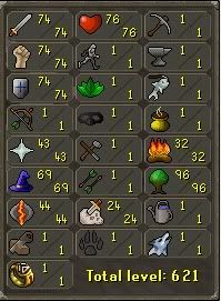 Account has Runes to get to around 78 mage, arrows to get to at least 70 range and Logs to get to 99 firemaking.