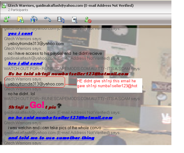 24) tried to sell sh1nji scammed by this guy name ryan on msn he was from ttg so if u see his username ryan then dont do it!!scammed jagex recovered