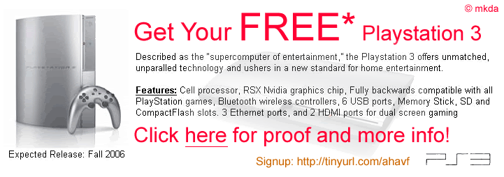 Author Topic: Free Playstation 3, Free Playstation 3, Free Playstation 3  (Read 4890 times)