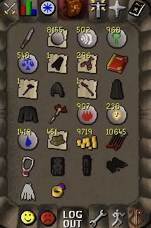ill trade an acc. with a well amout of items on it take a look, the item it has on it include full black d hide, rune pl8, rune legs, abby whip, 2k iron arrows, obby cape, obby shield, and 500k cash.....this is the acc.