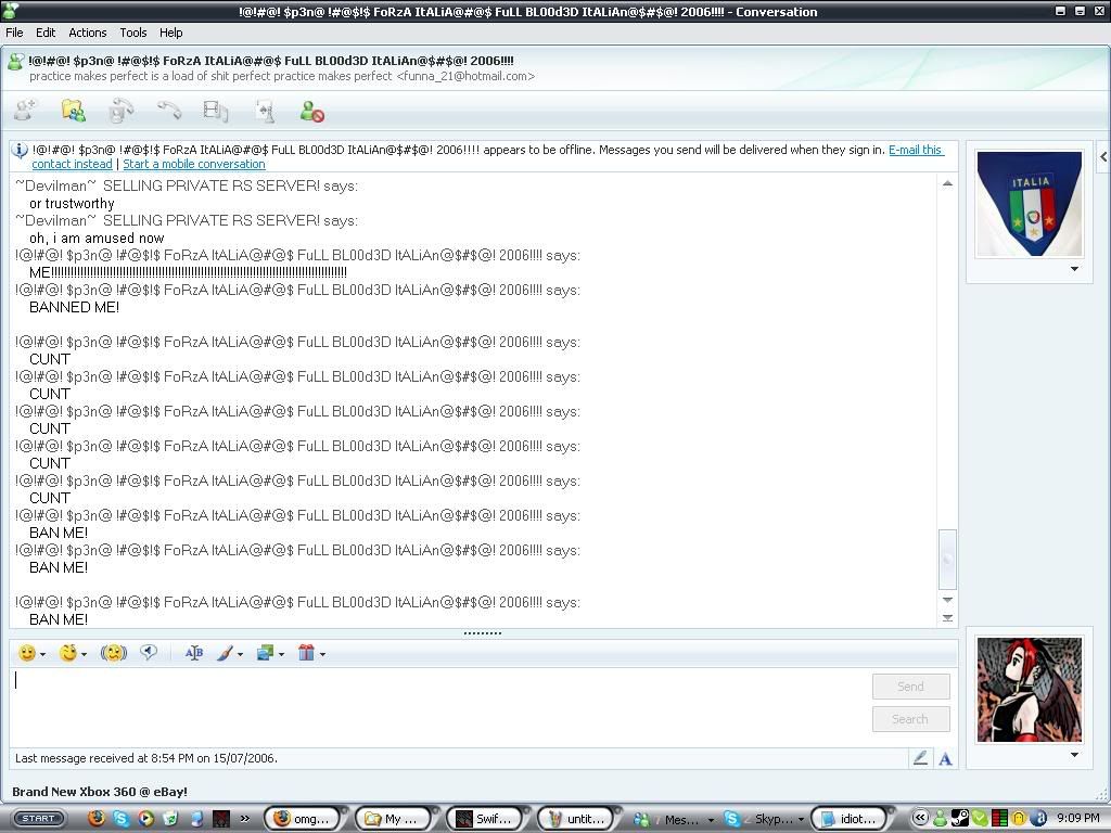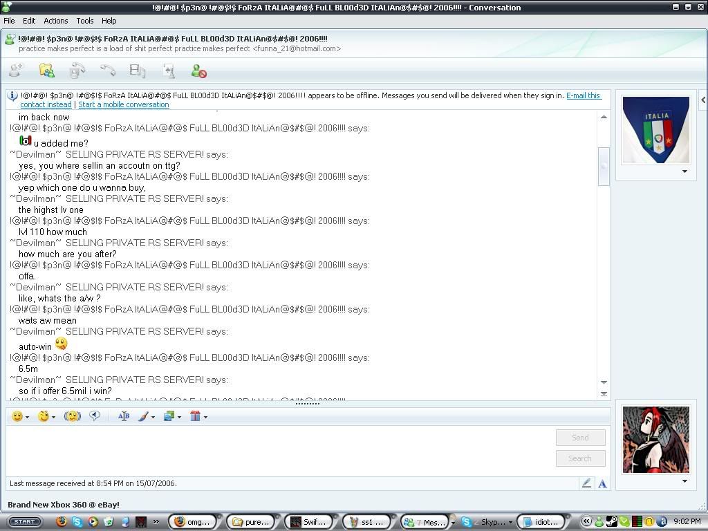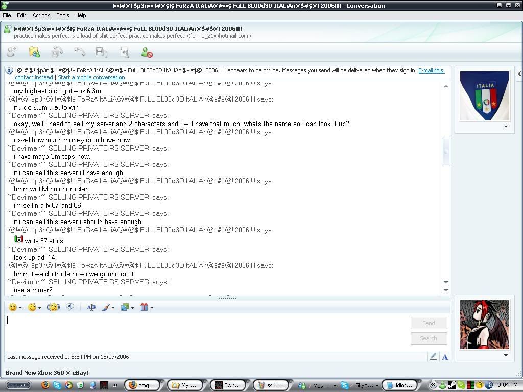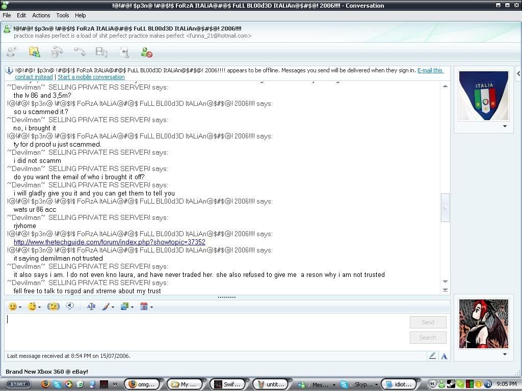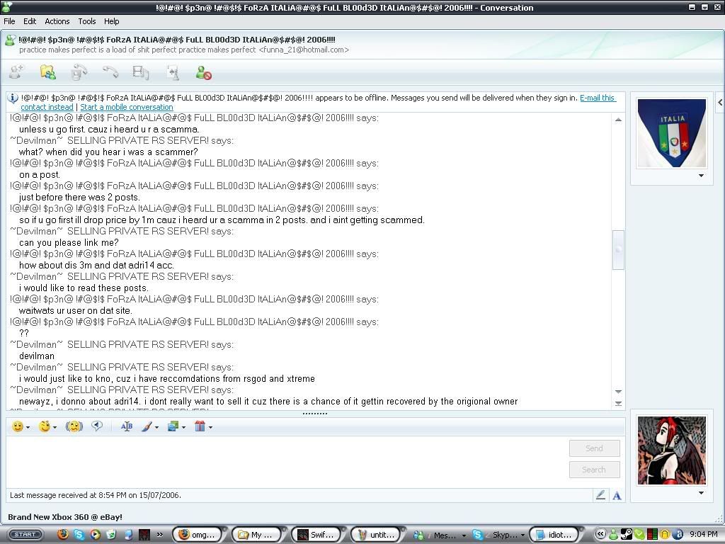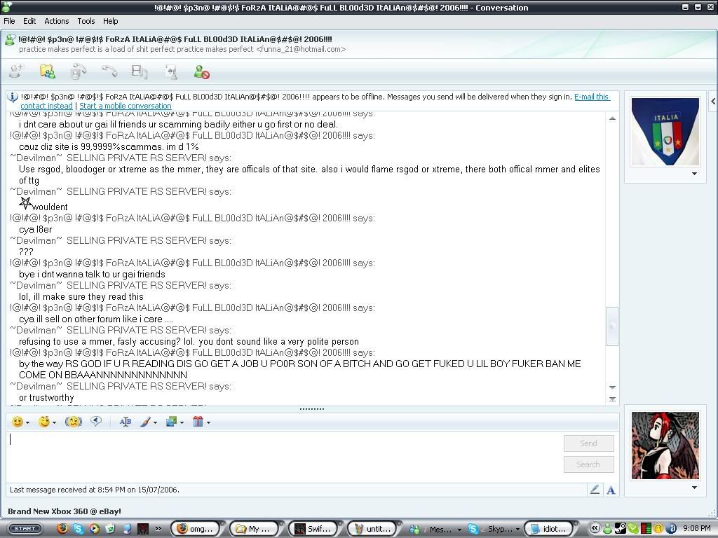 Like i said he is a twat. He called me a scammer, refused to use a officall mm. Call RSGOD, Xtreme and bloodoger gay, and absoutly flamed RSGOD. I wouldent trade him if i where all you, he sounds like a typical scmmer to me. Just lettin all you kno this is what happened.