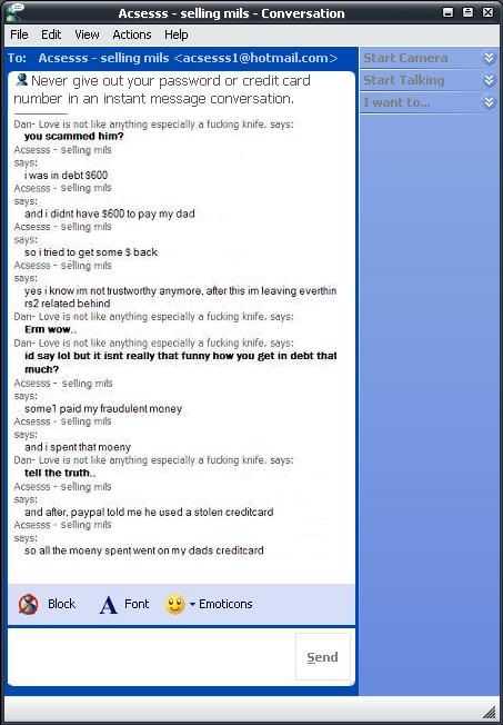 Wow, this is old. Im amaised some one went that far back into the posts and brought up this one. No i did not scam, that little weasel ezzron scammed me. after he posted this ages ago, he left and never came back. As far as dan and scamming goes, ive heard it from a few people, and i believe littlefly as i hold alot of trust in him.