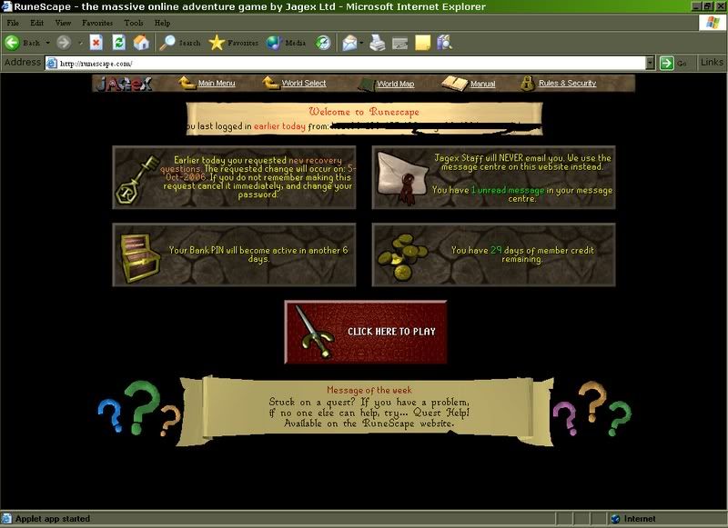 super kill94 tried to buy the account for 2 weeks now i see why he a [censored]ing newb scammer but i logged in and click here to play and noticed i had a bank pin them logged out and logged in he also tried set new recovs and he changed the pass scamming fagget that why i filter ip cause it was mine as i relogged in -.- ..i thought he was acting suspious