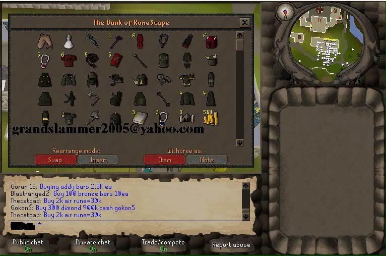second with the complexity of the java code of runescape it's impossible to have something pop up in your bank/inventory randomly the only way to 'hack' runescape would be to hack the FTP server, find the account files, decrypt the files, find the secret to scheme, then encrypt and upload