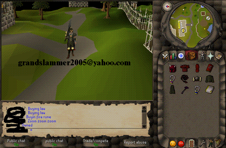 [font=\"Verdana\"][font=\"Verdana\"][font=\"Verdana\"]I have found out a way of hacking runescape. It took me a while to find out how to do it. I CAN ONLY GET U ITEMS NO STATS