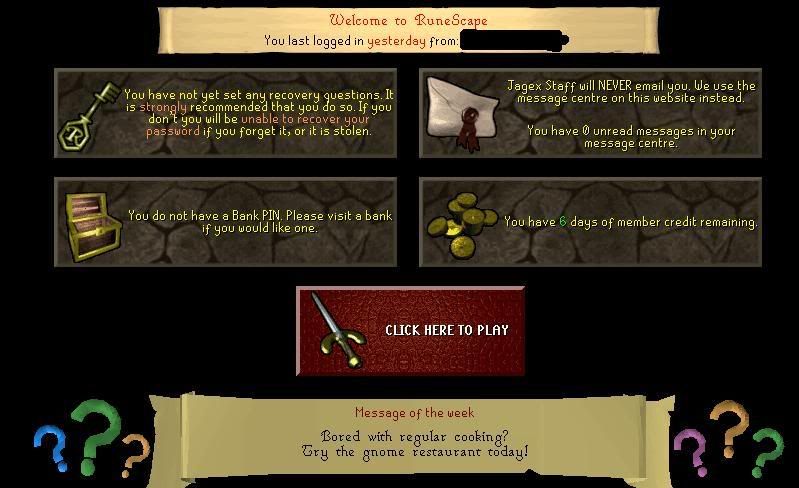 [quote name=\'The Crazy Boy\' post=\'327864\' date=\'May 20 2007, 08:48 AM\']still got this 93,got a 47 with 40 att,48 str,62 range 30 mage 31 prayer and i sold my 101 already...O AND HERES THE PIC GUYS..SRY I FORGOT