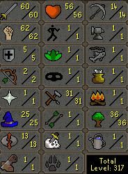 and also got a lv 41 pure mage with 63 mage 2 def :S 70 firemaking..and a good total for a pure