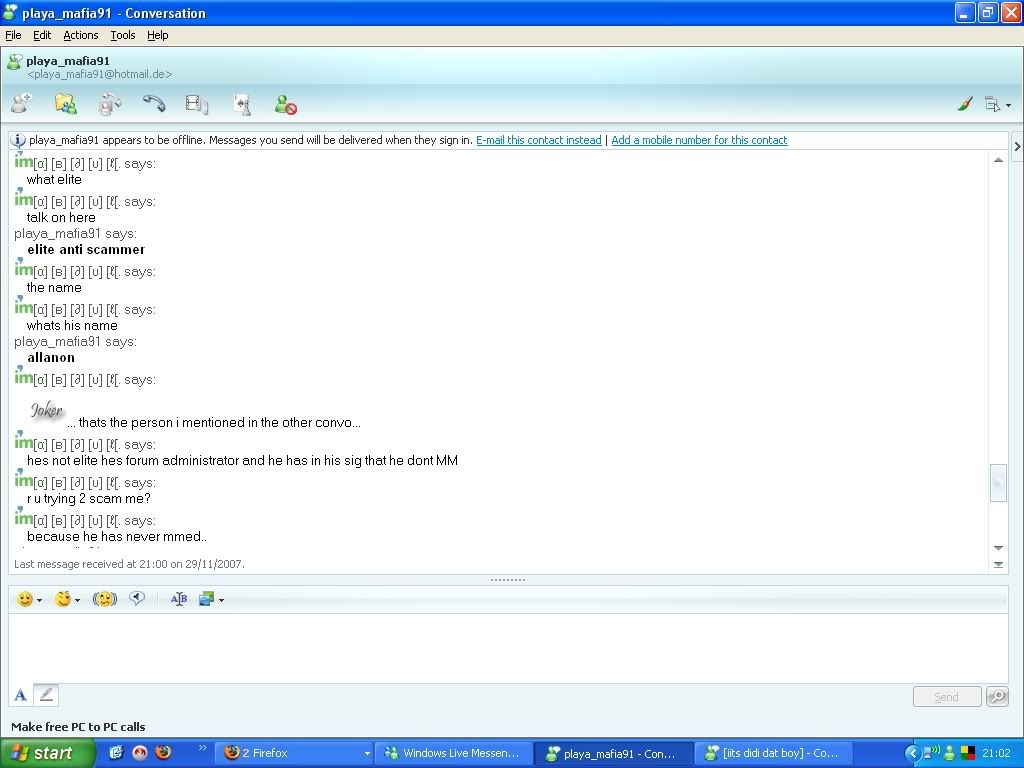 at the time he did that someone else was in convo too called 99 mage ftw or sumin...